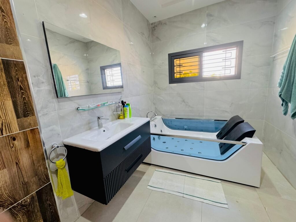 Emplacement stratégique : A 1 minute de la route principale, proche de Auchan, Brioche Dorée, Pharmacie Zac Mbao, écoles, sortie 9 de l’autoroute à péage, à seulement 15 minutes de l’Aéroport International Blaise Diagne (AIBD).